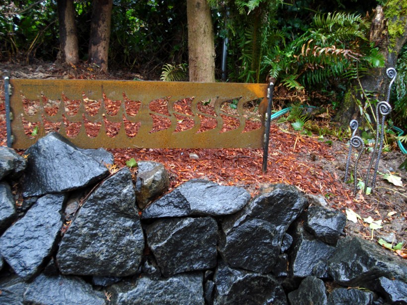 These were sold at the Yard, Garden & Patio show, a low fence and some fiddlehead ferns. These fiddleheads were placed where the future ones would be planted. In the after photo the hostas really pop next to the laser cut steel. Thanks Bunny, for the pictures!