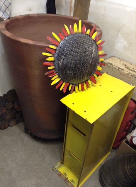 I really enjoy finding the right color scrap metal to use in my work. This was a perfect find to make the yellow petals for this sunflower. This paint will retain its color outdoors a lot longer since it’s a baked-on industrial finish.