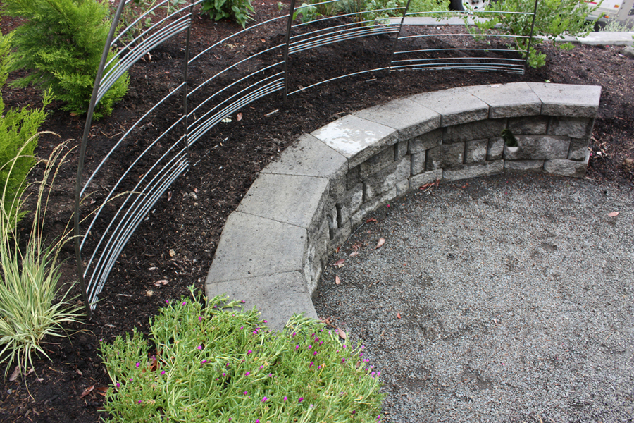 - Base of the trellis matches the curve of the stone bench- 10′ W x 6.5′ H