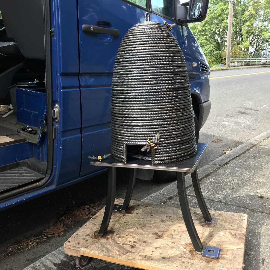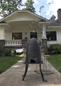 - Skep and Bee Swarm before installation. Skep 37″Hx19″Wx19″D, Swarm 8’Hx30″W.