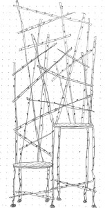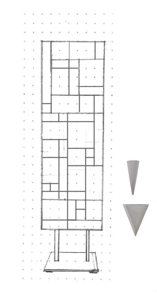 - Sketch of the Petit Mondrian with examples of free hanging vases provided by client.