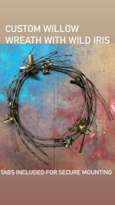 - Custom Willow Wreath with Wild Iris. 22″W x 3″D