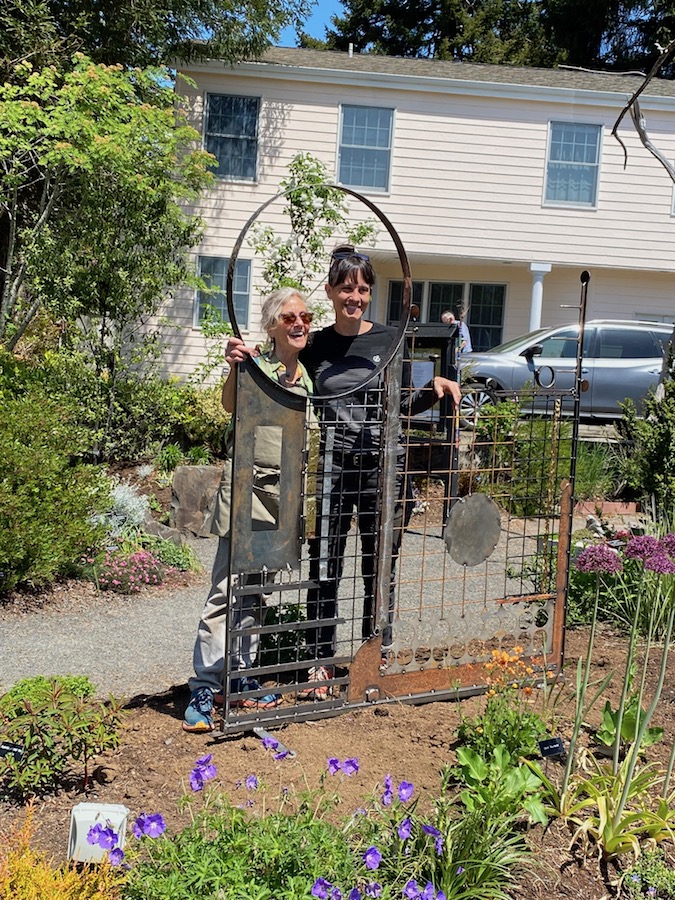 - Manzanita Moongate, in the Wonder Garden at Hoffman Center for the Arts, 6’Hx5’W, 2023. Materials include aluminum, brass, st