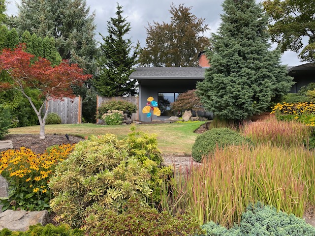 - Trellis creates a private nook in the front yard – SW Portland 10′ W x 6.5′ H x 32″ D