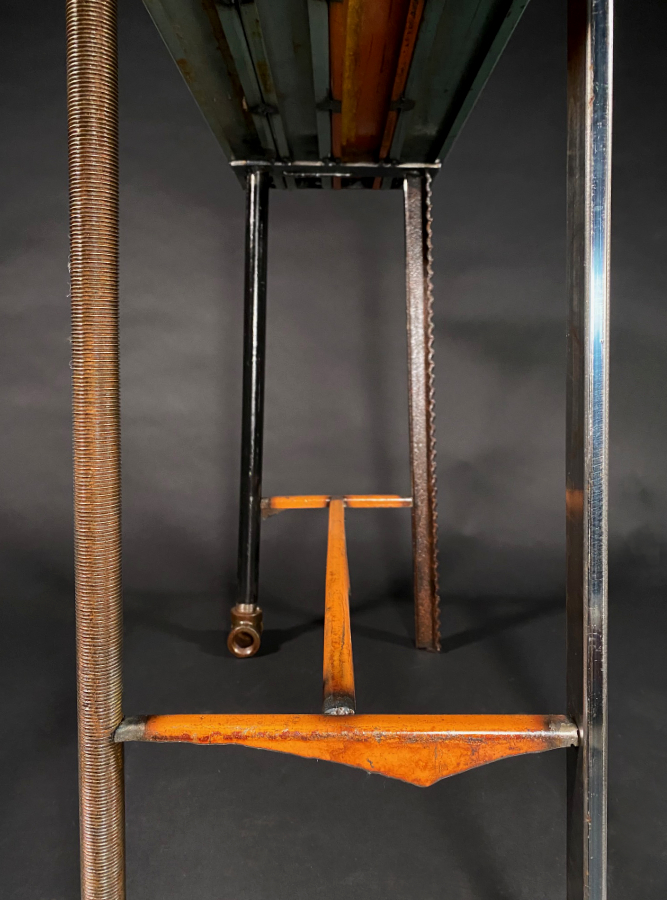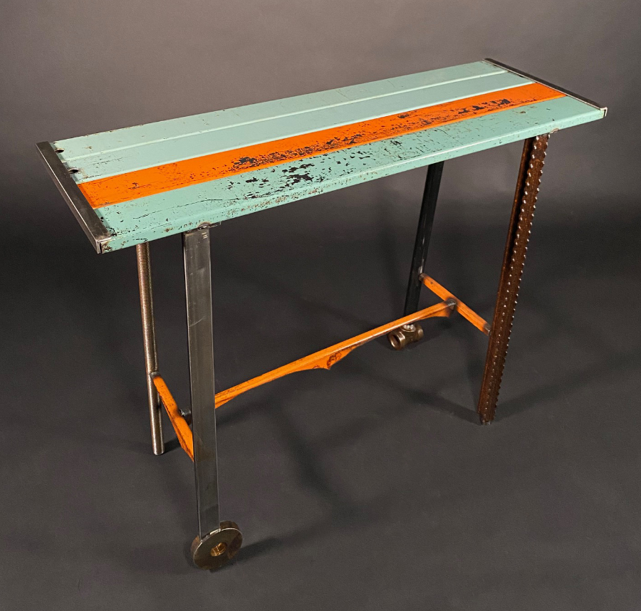 - Table built from camper jack stand, stainless details – 30″H x 2′ W