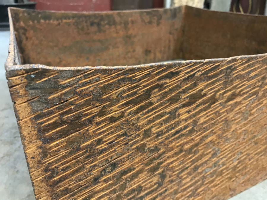 - Detail of the frame/ container for the stones and water pump. The texture was created to match the surface of the water feature. 9″Hx24″Wx24″D.