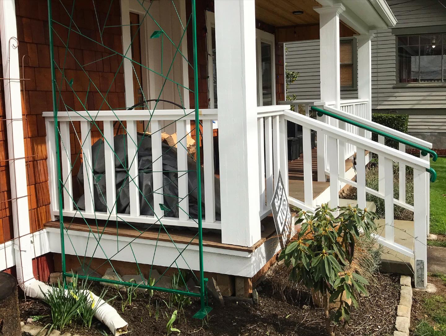 - Abstracted Laurel Trellis in Kelly Green to match the gate and hand rails.
