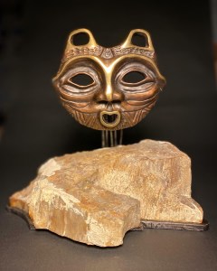 - Mount for Lillian Pitt bronze mask, ‘She Who Watches’. Rock and mask provided by the client.