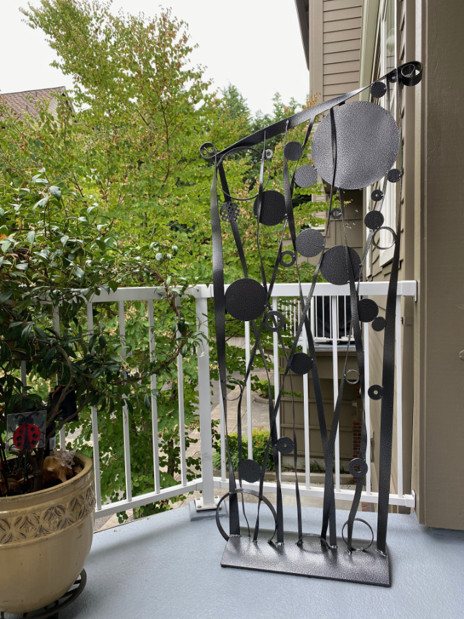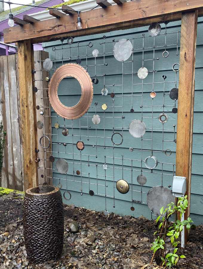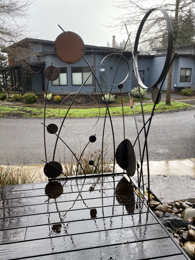 - Hoop Chime, designed to fit the space with view from seating area -SE Portland 6′ H