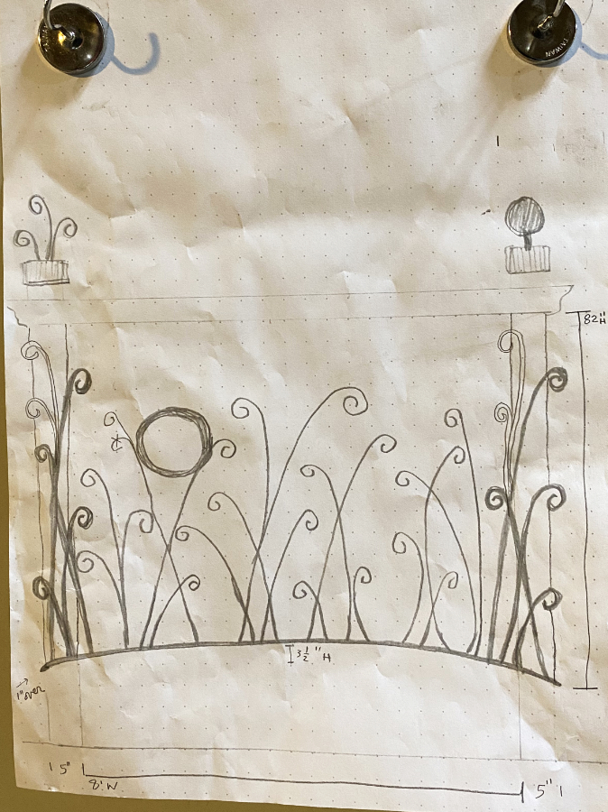 - Abstracted Laurel Gate design. This was a transformation of the original chain link fence gate. 7’H.