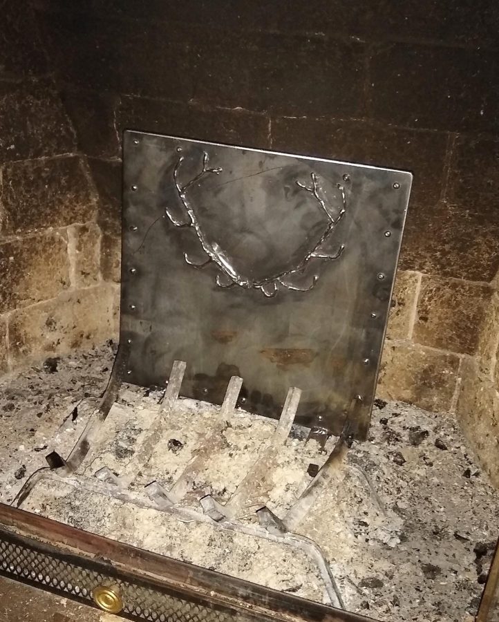 - Flush fireplace frame and screen with a small opening at the bottom to light the fire.