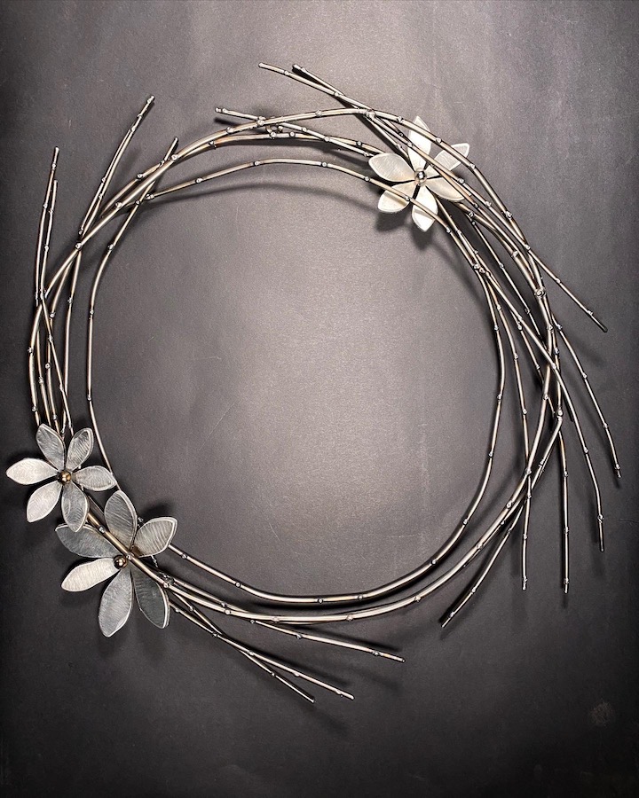 August 21, 2022 by indiometalarts Leave a comment ← Previous Image Next Image → Willow Wreath with Aluminum Flowers, steel and aluminum, 28″W