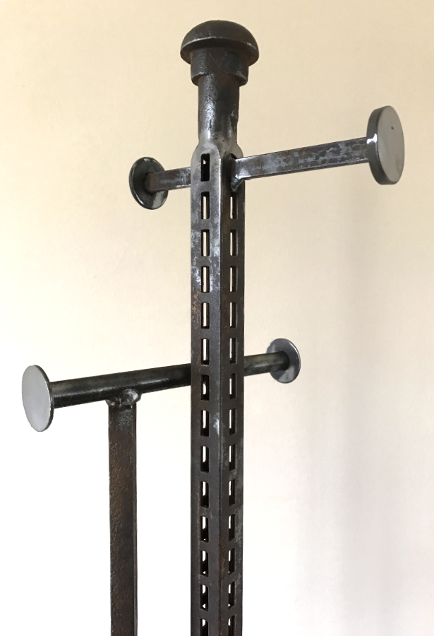 April 19, 2017 by indiometalarts Leave a comment ← Previous Image Next Image → Exploded Mondrian Coat Catcher, detail. Each hook has space below so all things hang freely.
