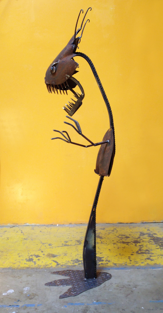 GARDEN DINOSAUR April 6, 2016 by indiometalarts Leave a comment ← Previous Image Next Image → Garden Predator dinosaur side: foot plate has three holes to hammer spikes through for stabilization. Garden dinosaur side: foot plate has three holes to hammer spikes through for stabilization.