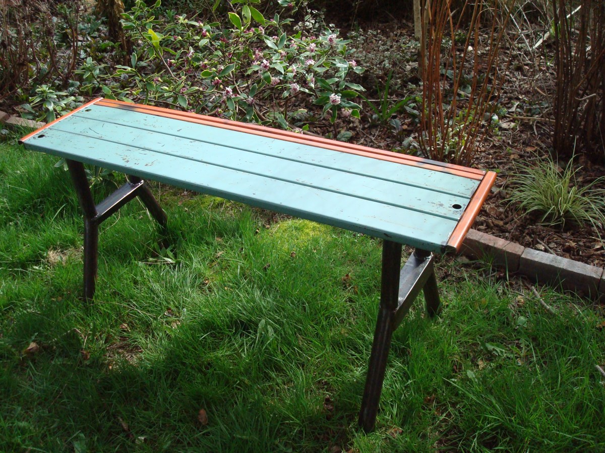 March 23, 2013 by indiometalarts Leave a comment ← Previous Image Next Image → salvaged steel bench vintage metal awnings, plumbing fittings and pipes for legs 40″ L/ 20″ W/ 19″ H