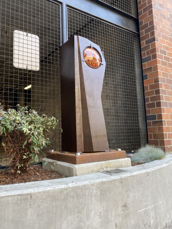 September 24, 2025 by indiometalarts Leave a comment ← Previous Image Next Image → Columbia Basalt Column, steel and glass, Auburn Downtown Sculpture Gallery, 2025-2026, 50″Hx17″Wx15″D.