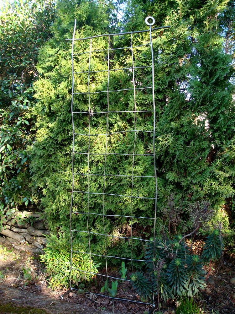 This was designed to be an elegant way to hide the neighbors garage. The evergreen clematis will be trained onto it.